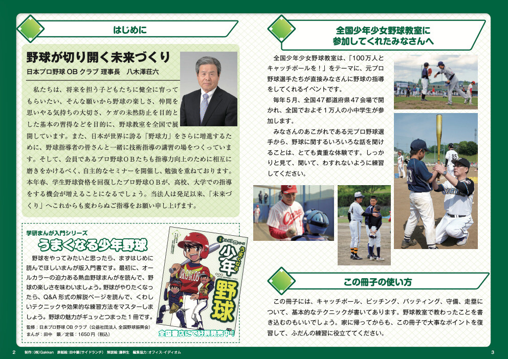 また、参加した子どもたちへは、野球の基本をわかりやすく解説した「オリジナル小冊子」を配布いたしました。教室が終わった後も、楽しく振り返りながら学べるよう工夫を凝らして作成しております。