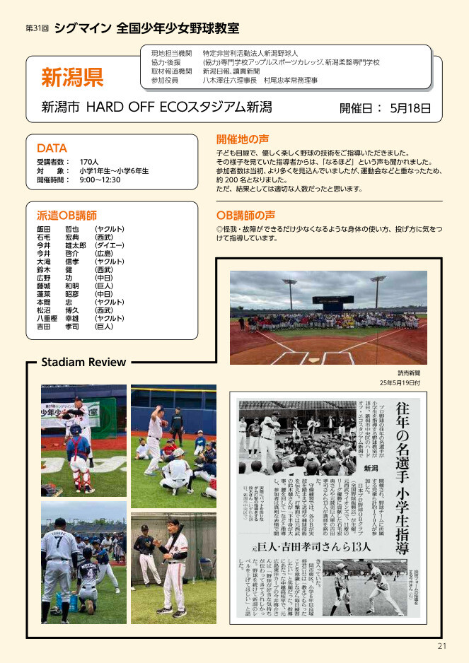 2025年度に実施いたしました「少年少女野球教室」の活動実績をまとめた開催報告書を制作いたしました。