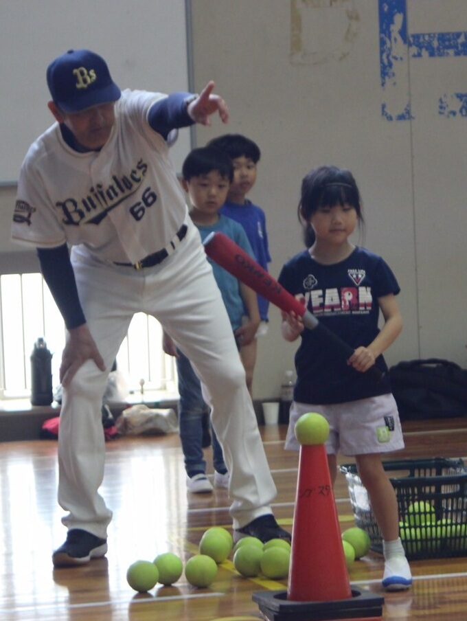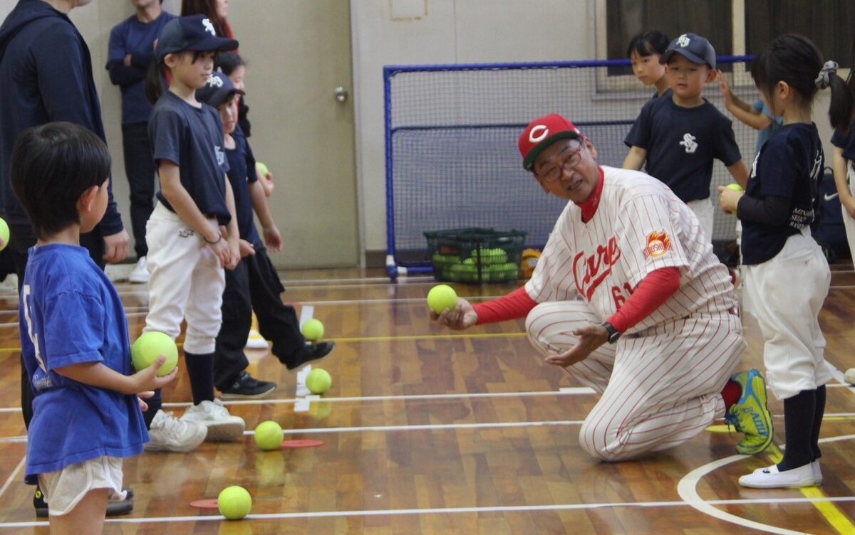 朝まで雨が降っていたため、当初は体育館での野球教室となりましたが、中学校のグラウンドは水はけが良く、10時30分から11時30分まではグラウンドでバッティング練習を行うことができました。