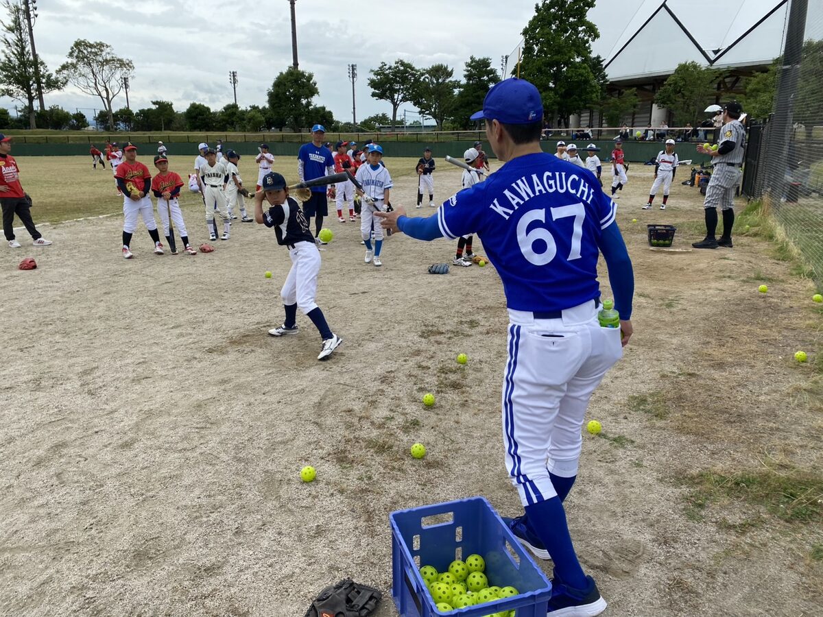 幸い小雨がぱらつく程度でおさまり、予定通り野球教室を行うことができました。